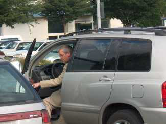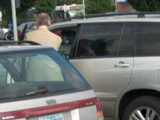 Photos takes on August 21,2008 at the 82nd & Division campus of PCC as Earl Blumenauer left a "town hall" on the cap & trade carbon control scheme. He left early, as some claim is his standard practice. I was asked by one of Earl's aids: why are you taking pictures and I replied: to show what a hypocrite Earl is. She responded with: it is a hybrid.
