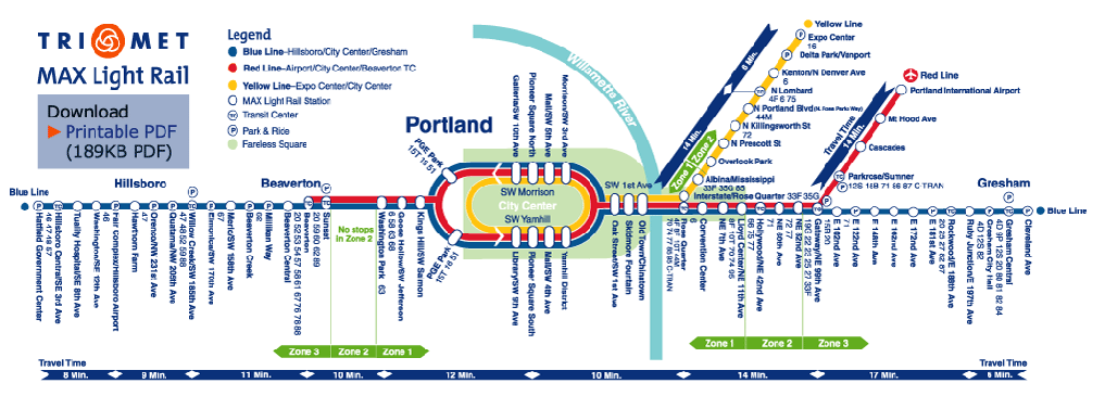Travel times per Trimet map (above): | |||||||