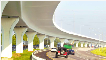 An elevated expressway should cost under $14 million/lane-mile.
